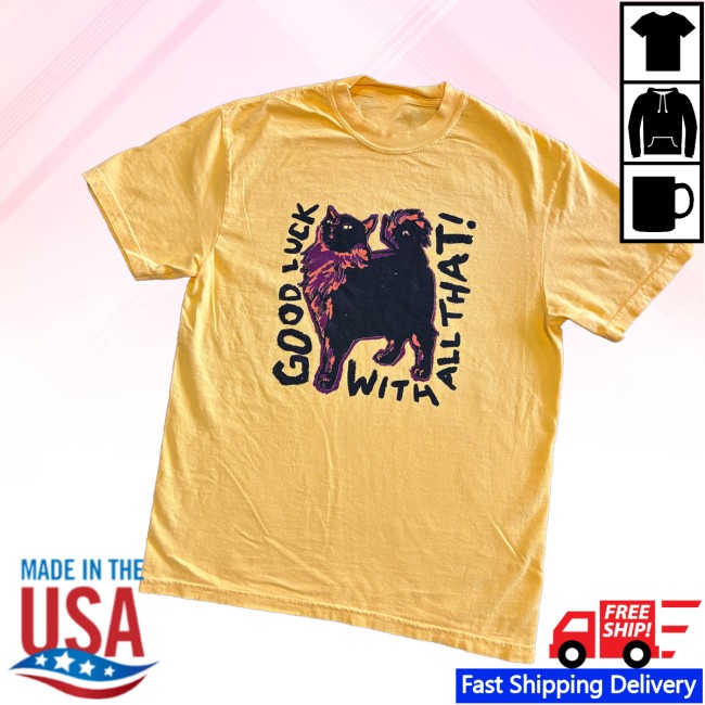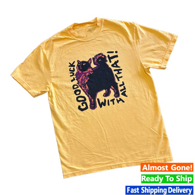 The design typically features a bold “Good Luck” themed illustration printed on the front, combining hand-drawn artwork with a casual streetwear aesthetic. The graphic reflects the artist’s creative storytelling style, making the shirt appealing to fans of indie illustration, comics, and alternative art.