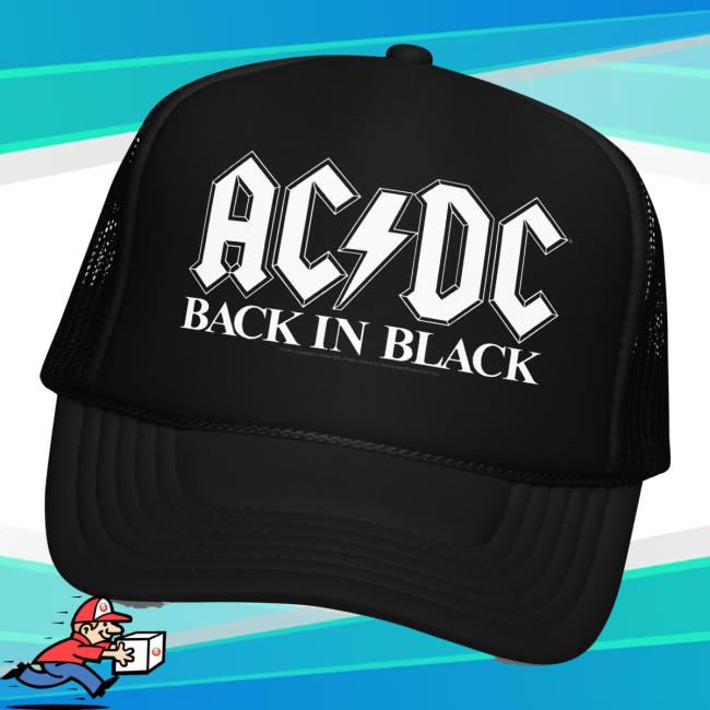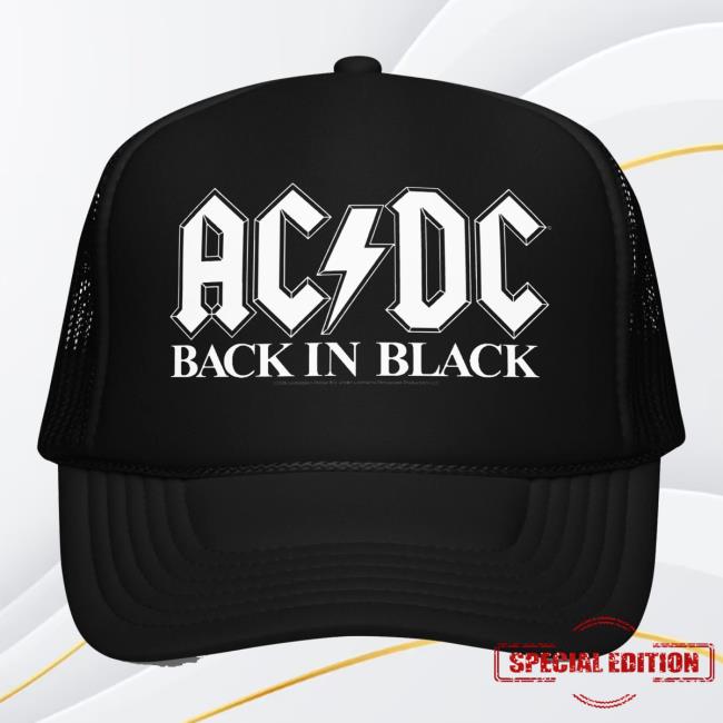 Acdc Merch Store Back In Black White Logo Trucker Hat