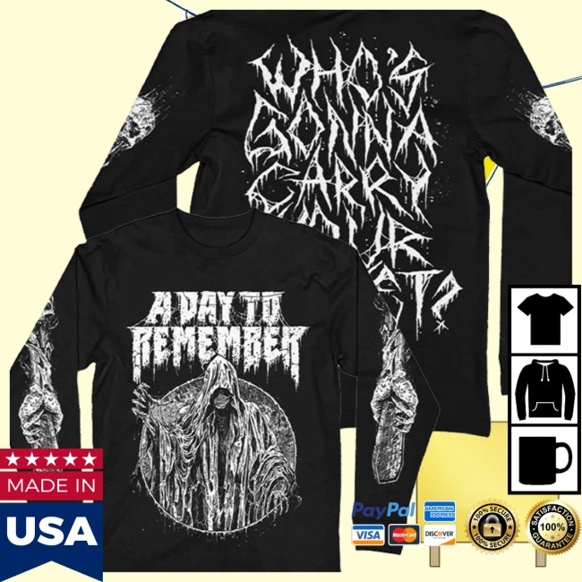 The A Day to Remember Store Merch Carry Your Casket Long Sleeve Tee Black is a bold and edgy piece designed for fans of the band’s powerful sound and distinctive style. Featuring a striking “Carry Your Casket” graphic, the design reflects the intense themes and high-energy spirit often associated with A Day to Remember’s music.