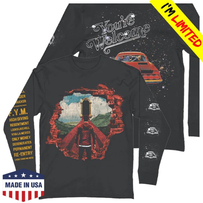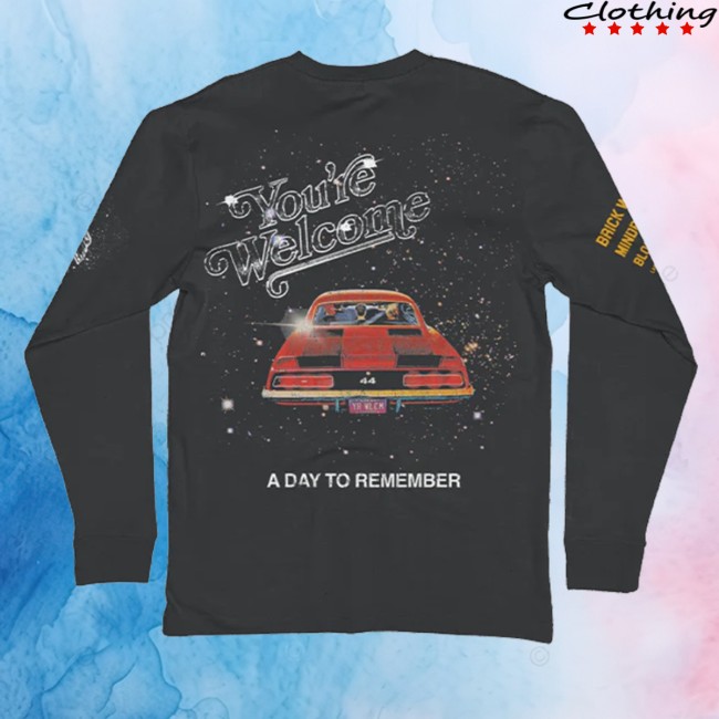 The A Day to Remember Store Merch You’re Welcome Long Sleeve Tee is a comfortable and stylish piece inspired by the band’s album You’re Welcome. Designed for fans of the band’s energetic blend of pop-punk and metalcore, this long sleeve T-shirt features a bold graphic that reflects the visual style associated with the album era.