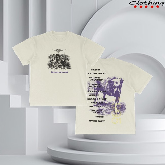 Alice In Chains Store Merch – Dog Tracklist T-Shirt is an officially licensed shirt celebrating the legendary sound of Alice In Chains. Featuring a bold graphic inspired by Dog imagery along with a tracklist design (listing songs or iconic elements from the band’s catalog), this tee brings a striking and nostalgic look for fans.