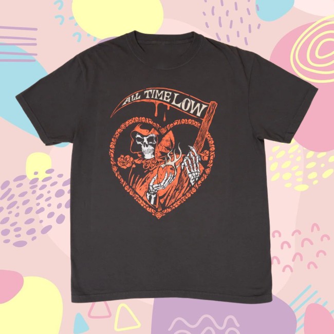 The All Time Low Store Merch Reaper T-Shirt is an ultra-stylish and must-have addition to any fan’s collection. Show your love for the iconic band, All Time Low, with this exclusive and eye-catching Reaper T-Shirt available at their official store. Featuring a striking design with a reaper motif, this shirt is perfect for showcasing your enthusiasm for All Time Low in a bold and edgy way. Made with high-quality materials, this tee ensures comfort and durability, making it ideal for everyday wear or to stand out at concerts and events. The All Time Low Store Merch Reaper T-Shirt is not just a piece of clothing, but a statement piece that allows you to express your passion for music and style simultaneously. Grab yours today and rock out in true All Time Low fashion