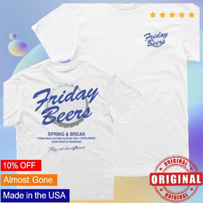 This tee features a playful bottlecap-inspired graphic that represents the moment of cracking open a drink and kicking off the weekend. The design blends the iconic “Friday Beers” vibe with classic spring break imagery, creating a bold look that celebrates relaxation, friendship, and good times under the sun. It’s part of the brand’s Spring Break collection, which includes several themed shirts and apparel items.
