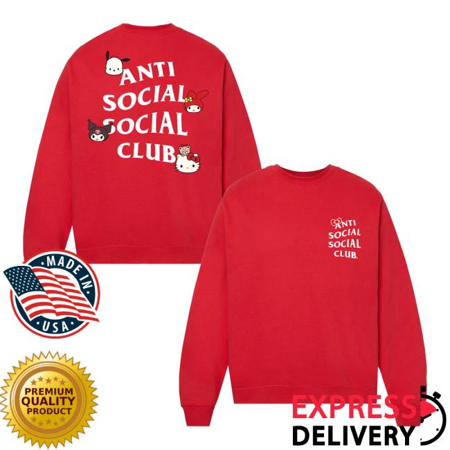 Antisocialsocialclub Merch Store Assc X Hello Kitty Hk & Friends Bow Crewneck Red is a vibrant, playful streetwear piece that brings together ASSC’s iconic edge and Hello Kitty’s signature charm. Crafted in a striking red hue, this crewneck features Hello Kitty and friends accented with the classic bow motif, creating a bold yet adorable design. Made from soft, cozy fabric, it offers all-day comfort while standing out as a unique collaboration essential. Perfect for fans who love expressive, high-energy style with a cute twist.