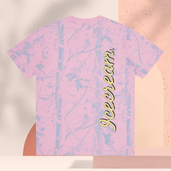 The Bbcicecream Store Merch Icecream Spring 26 Tree Camo T-Shirt – Pink is a stylish and eye-catching t-shirt that embodies the essence of streetwear fashion. This unique piece from the Bbcicecream Store Merch collection captures attention with its vibrant pink color and distinctive Tree Camo design. Perfect for spring and summertime, this t-shirt is a must-have for those who appreciate bold and fashionable clothing choices. Made with high-quality materials, this t-shirt ensures comfort and durability, making it suitable for everyday wear. Stand out from the crowd and showcase your individuality with the Bbcicecream Store Merch Icecream Spring 26 Tree Camo T-Shirt – Pink.”,