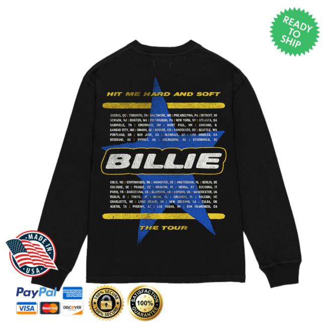 The Billie Eilish Merch Store Be Photo Star Dateback Black Longsleeve is a must-have item for any fan of Billie Eilish looking to showcase their admiration for the talented artist. This long sleeve shirt, available at the official Billie Eilish Merch Store, features a striking design with Billie Eilish’s iconic image and a statement that says Be a Photo Star. The black color adds a stylish touch to the shirt, making it a versatile piece for any wardrobe. Whether you’re attending a concert, hanging out with friends, or simply want to make a fashion statement, this black long sleeve shirt is the perfect choice. Don’t miss the opportunity to own this unique and eye-catching merchandise from the Billie Eilish Merch Store and let your inner star shine bright in style