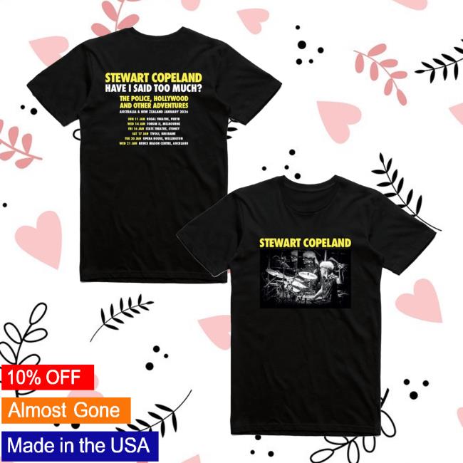 The Birdsrobe Merch Store Stewart Copeland Australian Tour T-Shirt Black is a limited edition collector’s item that encapsulates the essence of the iconic musician’s tour across Australia. This exclusive garment from Birdsrobe Merch Store celebrates the legendary Stewart Copeland’s visit to the vibrant land down under, featuring a sleek black design that pays homage to his trailblazing performances. The Birdsrobe Merch Store Stewart Copeland Australian Tour T-Shirt Black is a must-have for any devoted fan of the talented musician, offering a stylish and bold way to commemorate this special musical event. Purchase your very own Birdsrobe Merch Store Stewart Copeland Australian Tour T-Shirt Black today and showcase your appreciation for innovative music and unforgettable live performances in a truly fashionable manner