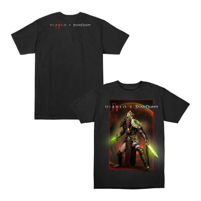 Blizzard Gear Merch Store Shop Diablo X Starcraft The Dark Prelate Black T-Shirt features a dark, striking crossover design that merges the iconic worlds of Diablo and StarCraft. Crafted from soft, premium cotton, this black tee delivers all-day comfort while showcasing bold Dark Prelate artwork. Perfect for dedicated gamers and collectors, it’s a standout piece in any Blizzard merch collection.