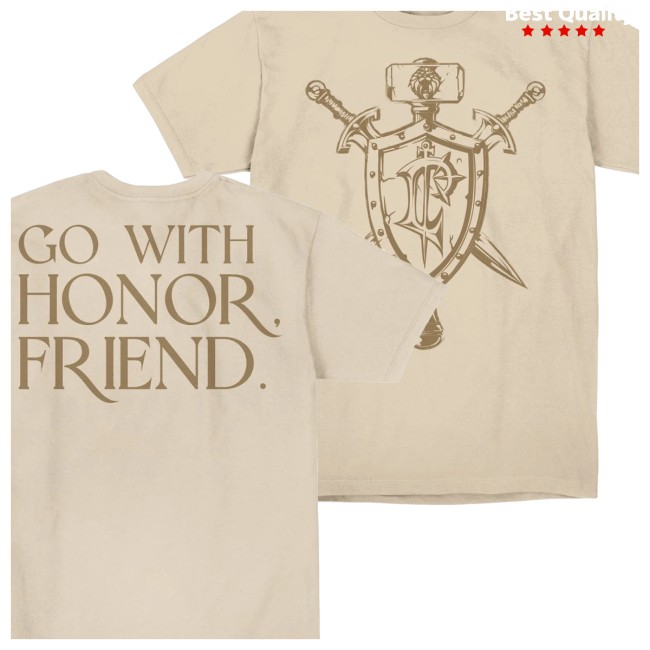 Perfect for both Horde and Alliance adventurers or those who simply live by the motto “Go With Honor,” this tee blends comfort with fandom and lets you carry a bit of Azeroth’s spirit with you wherever you go.