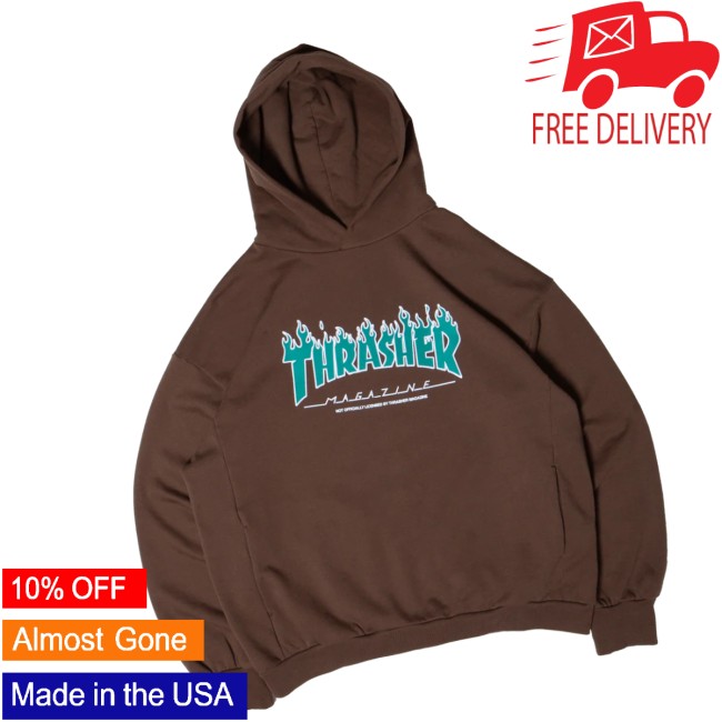 Elevate your streetwear game with the Thrasher Hoodie from Bloody Sunday Store in a rich brown shade. This hoodie features the iconic Thrasher logo boldly printed on the front, bringing skate culture straight into your everyday style. Made from soft, high-quality fabric, it provides cozy comfort and durability for all-day wear. With an adjustable drawstring hood and front kangaroo pocket, it’s perfect for skate sessions, casual outings, or layering during cooler days.