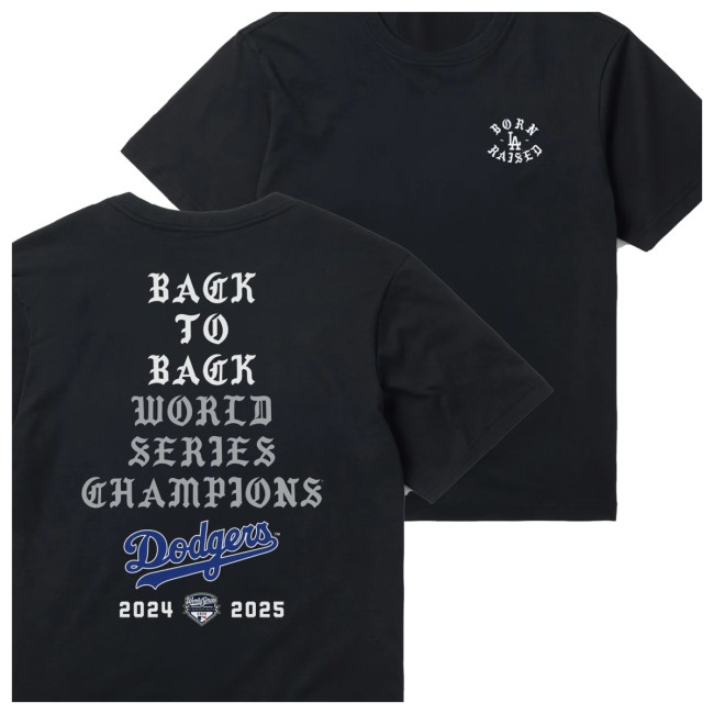 Born X Raised Store Merch Born X Raised + Dodgers Back To Back Stack Tee Black