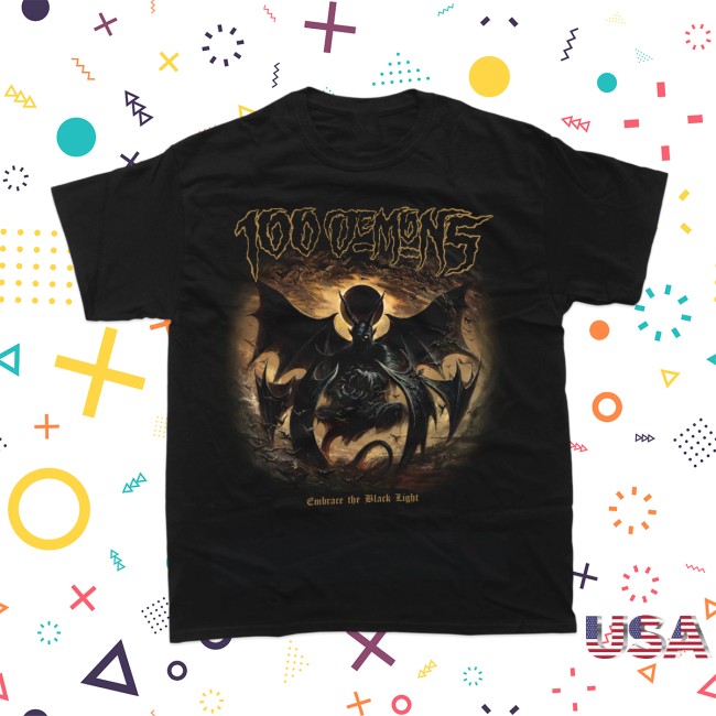 Closed Casket Activities Store Merch 100 Demons - Embrace The Black Light - Black T-Shirt