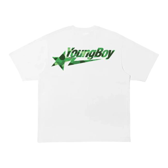 Complex Merch Store Bape X Youngboy Never Broke Again Sta Tee White is a premium collaboration T-shirt that combines BAPE’s iconic STA branding with the unmistakable presence of YoungBoy Never Broke Again. Featuring bold, street-inspired graphics on a clean white base, this tee delivers a fresh yet powerful look rooted in hip-hop and streetwear culture. Crafted from soft, high-quality fabric with a comfortable everyday fit, it’s perfect for casual outfits, street styling, or fans collecting exclusive BAPE and YoungBoy merch.