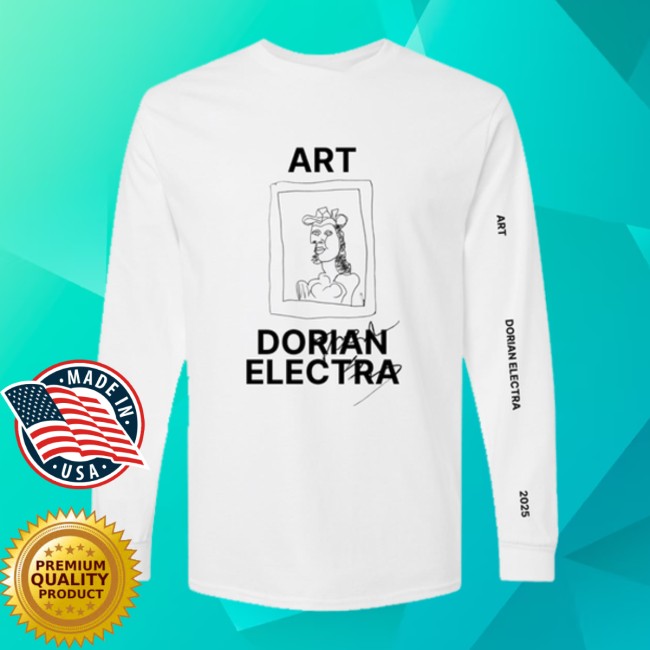 The Art Long Sleeve Tee from the official merch collection of Dorian Electra is a stylish piece inspired by the artist’s bold, avant-pop aesthetic. Featuring graphic artwork tied to the ART era, the design blends futuristic visuals with the playful, experimental style that defines Dorian Electra’s music and visual identity.