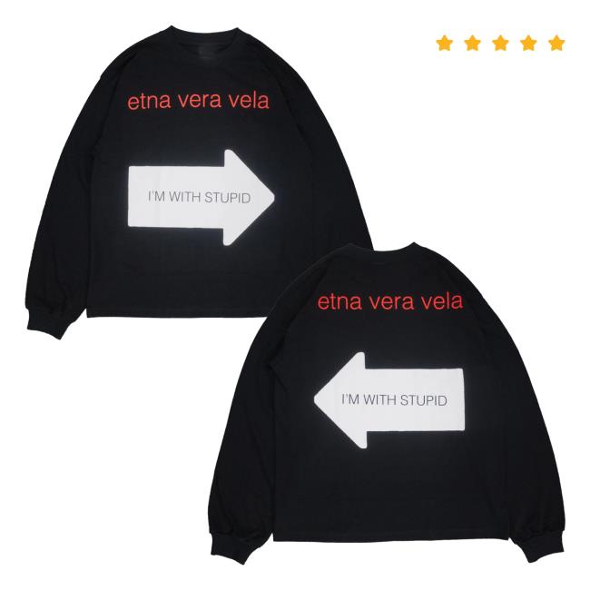 The Etnaveravela Merch Store I’m With Stupid Longsleeve Black is a stylish and playful addition to any wardrobe. Featuring the bold “I’m With Stupid” graphic on a sleek black long sleeve, this shirt combines eye-catching design with everyday comfort. Made from soft, high-quality fabric, it’s perfect for layering, casual wear, or showing off your unique sense of style.