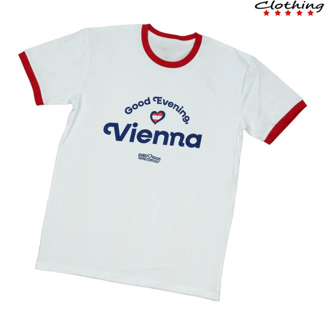 Eurovision Merch Store Vienna Ringer T-Shirt White is a classic and stylish tee celebrating the spirit of Eurovision in Vienna. Featuring a clean white base with contrasting ringer details, this t-shirt delivers a timeless retro look inspired by the iconic song contest. Made from soft, high-quality fabric, the Eurovision Merch Store Vienna Ringer T-Shirt White ensures all-day comfort and versatility, making it perfect for casual wear, fan events, or proudly showing your love for Eurovision.