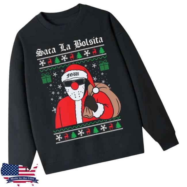 Foosgonewild Merch Store Saca La Bolsita Xmas Crewneck is a festive and cozy addition to your holiday wardrobe. Made from soft, high-quality fabric, this crewneck ensures warmth and comfort for all-day wear. Featuring a playful “Saca La Bolsita” Christmas design, it brings holiday cheer with a fun and unique style. Perfect for holiday parties, casual outings, or gifting, this crewneck combines festive spirit with everyday comfort.