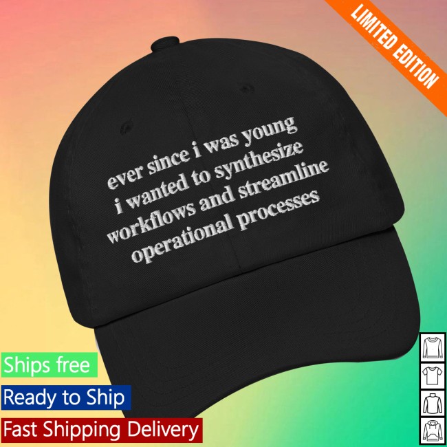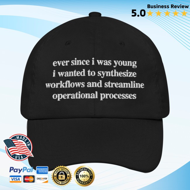 I couldn’t find any specific listing or official product details for a hat called “Ever Since I Was Young I Wanted To Synthesize Workflows And Streamline Operational Processes Hat” from a Good Shirts Store merch line — there don’t appear to be publicly accessible listings or branded pages for this exact item online that the tools can pull up.