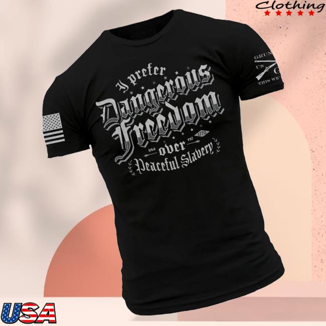 The Grunt Style Merch Store Dangerous Freedom T-Shirt Black is a must-have item for those seeking to show off their patriotism and distinctive style. This t-shirt, available at the Grunt Style Merch Store, features a bold design that encapsulates the essence of dangerous freedom. The striking black color of the shirt provides a perfect backdrop for the powerful message it conveys. With its high-quality material and attention to detail, this t-shirt is not only a fashion statement but also a symbol of pride in freedom and individuality. Make a statement and stand out from the crowd with the Grunt Style Merch Store Dangerous Freedom T-Shirt Black