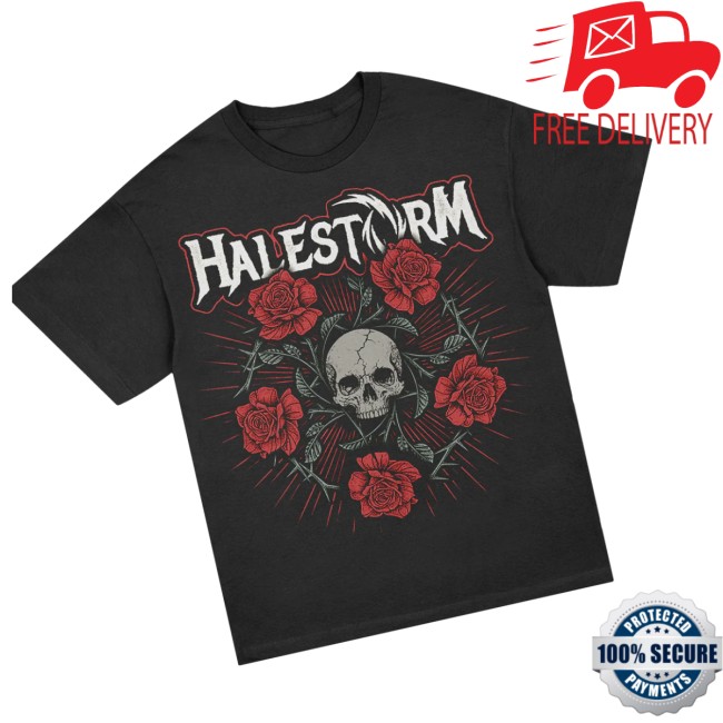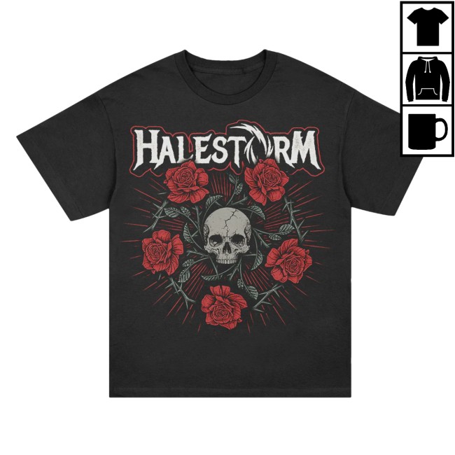 The Halestorm Penta Rose T-Shirt in Black is a striking piece of official band merchandise that blends dark symbolism with the powerful identity of the band. The design features a bold pentagram-style rose graphic, combining gothic imagery with the iconic Halestorm aesthetic, creating a dramatic and eye-catching look for fans of hard rock.
