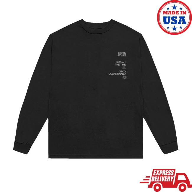 Harry Styles Merch Store Shop Kiss All The Time Disco Occasionally Reflective Print Longsleeve is a stylish and expressive long-sleeve shirt inspired by Harry Styles’ playful, disco-infused aesthetic. Featuring the Kiss All The Time Disco design with an occasionally reflective print, this piece delivers a subtle shine that stands out under certain lighting while maintaining a clean, modern look. Crafted from high-quality, breathable fabric, it offers a soft feel, durability, and comfortable wear across seasons. The classic long-sleeve silhouette makes it perfect for layering or wearing on its own. Ideal for fans of Harry Styles and fashion-forward, statement-driven merch apparel.
