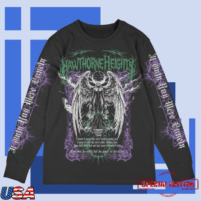 The Hawthorne Heights Store Merch Hawthorne Heights – Angel Of Death Long Sleeve T-Shirt in Black is a must-have item for fans of the iconic band. This long sleeve t-shirt features a striking design of the Angel Of Death, making it a standout piece in any wardrobe. The high-quality construction ensures both comfort and durability, perfect for everyday wear or special occasions. Show your love for Hawthorne Heights in style with this unique and eye-catching tee. Ideal for concerts, casual outings, or simply expressing your passion for the band, this long sleeve t-shirt is a versatile addition to any music lover’s collection. Don’t miss out on the opportunity to own this exclusive piece from the Hawthorne Heights Store Merch collection. Get yours today and rock out in the Angel Of Death Long Sleeve T-Shirt in Black