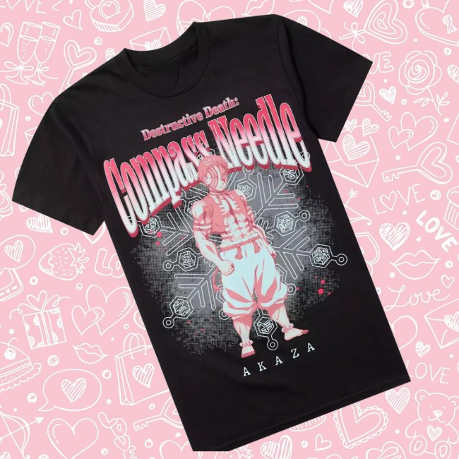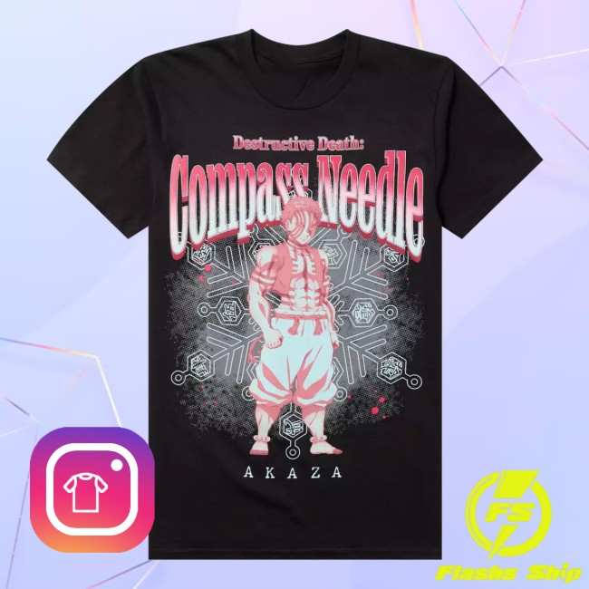 The Hot Topic Shop Merch – Demon Slayer: Kimetsu no Yaiba Akaza Compass Needle T-Shirt is a stylish tee for fans of the hit anime series Demon Slayer: Kimetsu no Yaiba. Featuring bold, eye-catching graphics, this shirt showcases Akaza, one of the most memorable antagonists from the series, alongside a dynamic compass-needle design that adds an edgy, adventurous look.