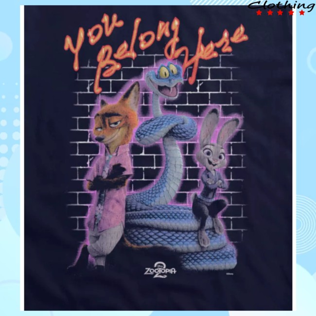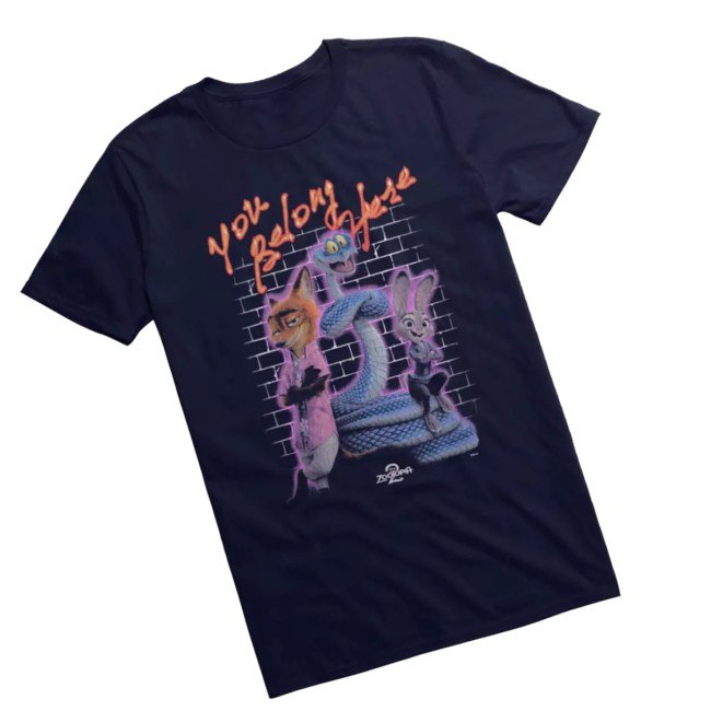 The Hottopic Shop Merch Disney Zootopia 2 You Belong Here T-Shirt is a stylish and trendy piece of clothing that is sure to make a statement. This officially licensed Disney Zootopia merchandise features a unique and eye-catching design inspired by the beloved animated film. The t-shirt showcases a fun and colorful graphic with the text You Belong Here from the second installment of the Zootopia series. Made with high-quality materials, this t-shirt is not only fashionable but also comfortable to wear. Whether you are a fan of Zootopia or simply appreciate cool and playful fashion, this Hottopic shop merch item is a must-have addition to your wardrobe. Perfect for casual outings, movie nights, or Disney-themed events, this t-shirt allows you to showcase your love for the movie while expressing your unique style. Upgrade your collection of Disney apparel with the Hottopic Shop Merch Disney Zootopia 2 You Belong Here T-Shirt and let your inner fan and fashionista shine