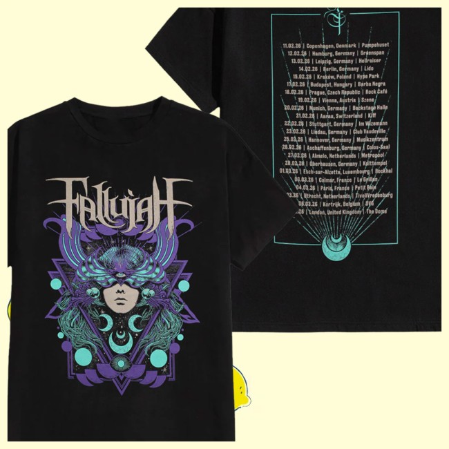 Made from premium-quality cotton, the shirt offers a soft, breathable feel while remaining durable for everyday wear. The design typically includes tour-specific artwork—often combining cosmic, atmospheric visuals with dark, intricate elements that reflect Fallujah’s signature sound. Tour dates or locations may also be printed, giving it that authentic concert merch appeal.