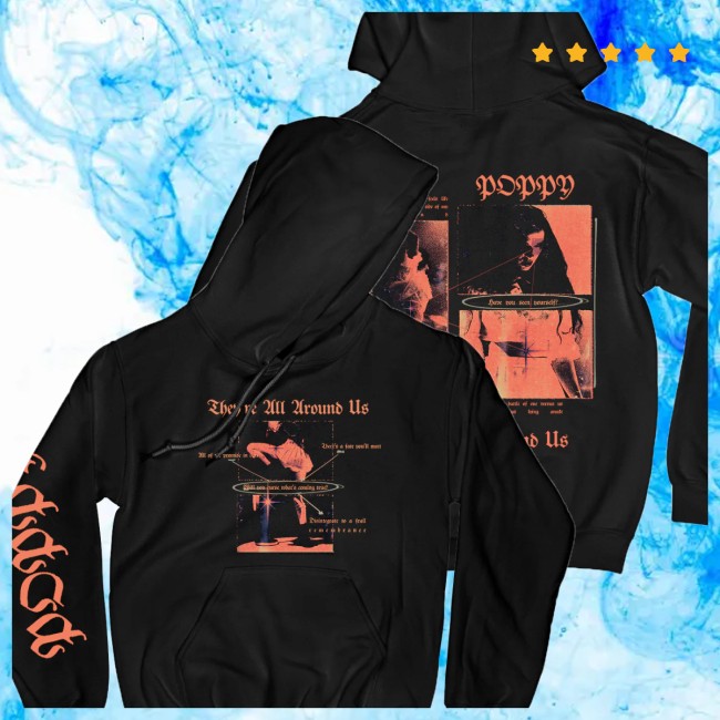 Impoppy Store Merch They’re All Around Us Hoodie delivers a mysterious and bold aesthetic, inspired by Impoppy’s distinctive artistic vision. Featuring the eye-catching They’re All Around Us graphic, this hoodie creates a statement piece that blends intrigue with contemporary streetwear style.