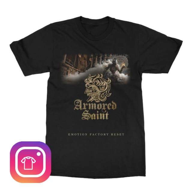 The Armored Saint “Emotion Factory Reset” Helmet Logo T-Shirt from Indiemerchstore delivers a bold, modern metal aesthetic inspired by the band’s Punching the Sky era. Featuring the striking helmet logo associated with “Emotion Factory Reset,” this design captures Armored Saint’s signature mix of power and attitude.