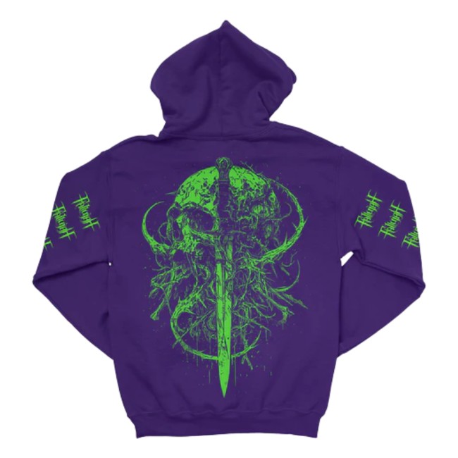 Indiemerchstore Fallujah Dagger Pullover Hoodie is a bold and striking piece designed for fans of progressive death metal band Fallujah. Featuring a sharp dagger-inspired graphic that reflects the band’s dark, atmospheric aesthetic, this hoodie makes a powerful statement. Crafted from soft, heavyweight fabric, it provides warmth, durability, and all-day comfort. The classic pullover design includes an adjustable drawstring hood, spacious front kangaroo pocket, and ribbed cuffs and hem for a secure fit. Perfect for concerts, casual wear, or cold-weather layering, this hoodie is an essential addition to any Fallujah fan’s merch collection.