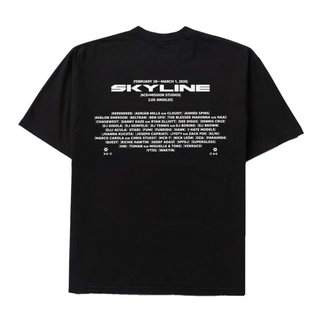 The Insomniac Events Shop Store Merch Skyline 2026 Lineup SS Tee is a stylish short-sleeve T-shirt designed for fans of electronic music and festival culture. Inspired by the iconic Skyline Festival, this tee features a bold lineup-style graphic that celebrates the artists and energy of the 2026 event.