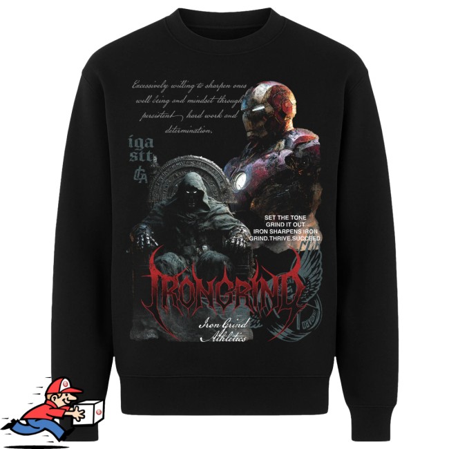 Irongrind Athletics Store Merch Doom & Ironman’ Premium Crew Neck is a striking sweatshirt that fuses power, rivalry, and elite athletic streetwear style. Inspired by the iconic clash between Doom and Iron Man, this premium crew neck showcases a bold graphic that represents strength, intelligence, and unstoppable determination.