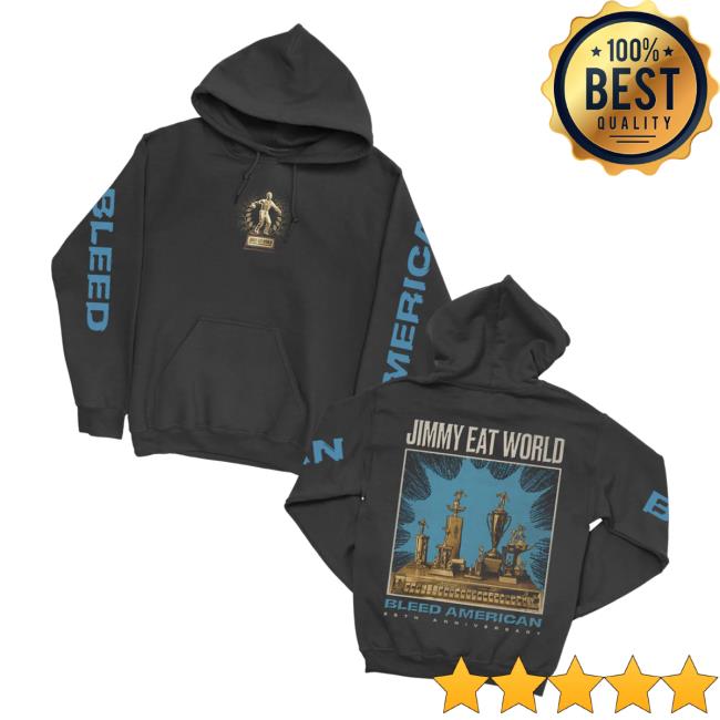 immy Eat World Merch Store Bleed American 25Th Anniversary Pullover Hoodie Black is a premium piece of band merchandise created to celebrate the legacy of the iconic Bleed American album. Inspired by the album’s timeless design and cultural impact, this hoodie blends classic rock aesthetics with modern streetwear style. Crafted for comfort and durability, it features a soft fabric, relaxed fit, and bold anniversary-themed graphics that make it perfect for everyday wear or concerts. As part of the official anniversary collection, it reflects the enduring popularity of Bleed American, one of Jimmy Eat World’s most influential albums, making it a meaningful and stylish choice for fans and collectors alike.