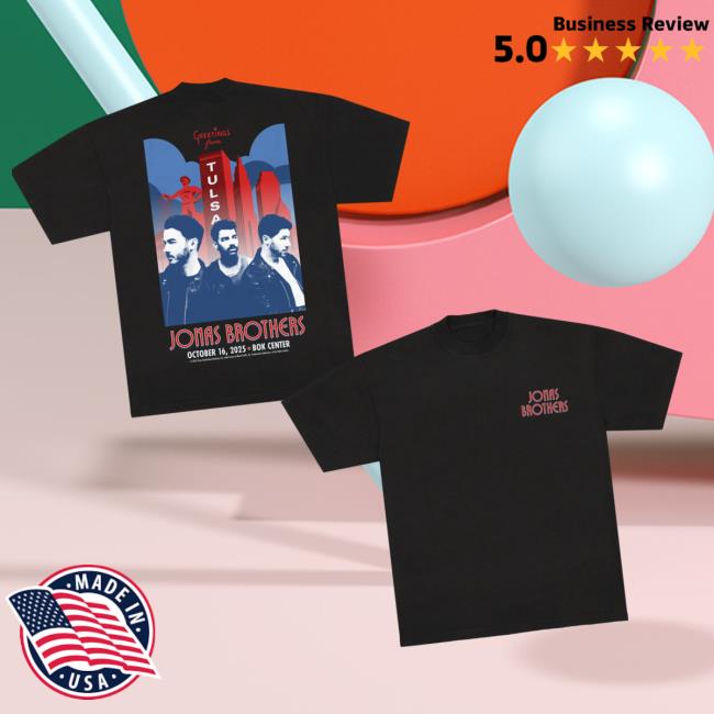 The Jonas Brothers Merch Store Greetings From Your Hometown Tulsa OK Tee is a stylish and comfortable shirt celebrating the Jonas Brothers’ hometown roots. Featuring the exclusive Greetings From Your Hometown Tulsa OK design, this tee is made from soft, high-quality fabric, offering both comfort and a bold fan-ready look. The Jonas Brothers Merch Store Greetings From Your Hometown Tulsa OK Tee is perfect for concerts, casual outings, or showing your love for the band anywhere you go.
