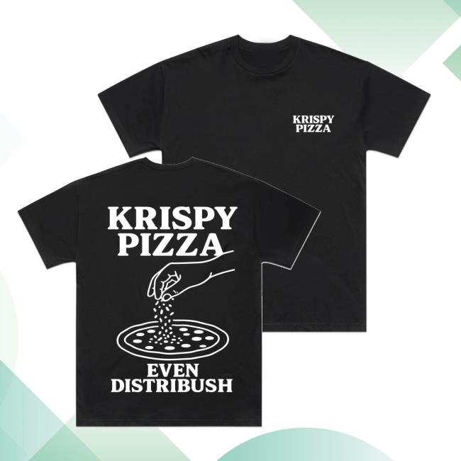The Krispy Pizza Merch Store Even Distribush Black T-Shirt is a must-have item for pizza and fashion enthusiasts alike. This unique black t-shirt features the iconic Krispy Pizza logo on the front, giving you a stylish way to show your love for this popular eatery. With its high-quality fabric and comfortable fit, the Krispy Pizza Merch Store Even Distribush Black T-Shirt is perfect for casual wear or as a statement piece. Whether you’re grabbing a slice at your favorite pizzeria or simply want to add a cool and versatile piece to your wardrobe, this t-shirt is sure to become a staple in your collection. Order yours today and showcase your love for Krispy Pizza in a trendy and eye-catching way