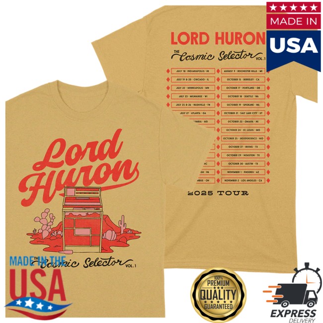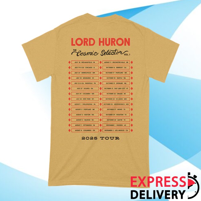 An official Lord Huron T-shirt from the band’s online store and tour merch collection — a wearable keepsake celebrating the CS Tour (often tied to the Cosmic Selector theme seen in recent merch rolls). Whether sold online or at shows during the 2025–2026 tour cycle, this tee captures the spirit of Lord Huron’s cinematic indie folk sound, blending atmospheric motifs with classic band branding.