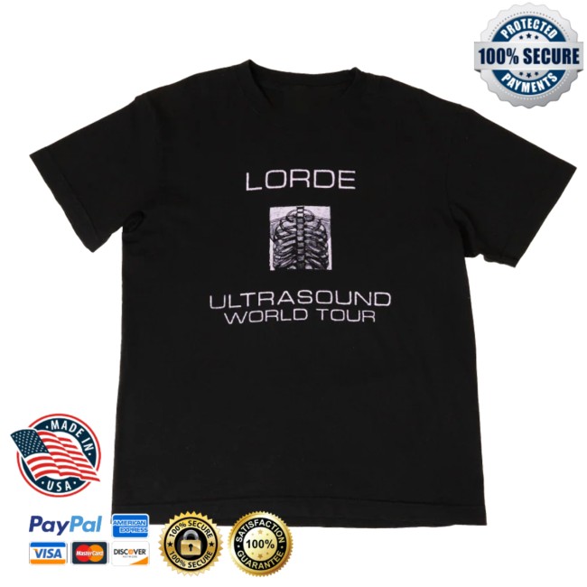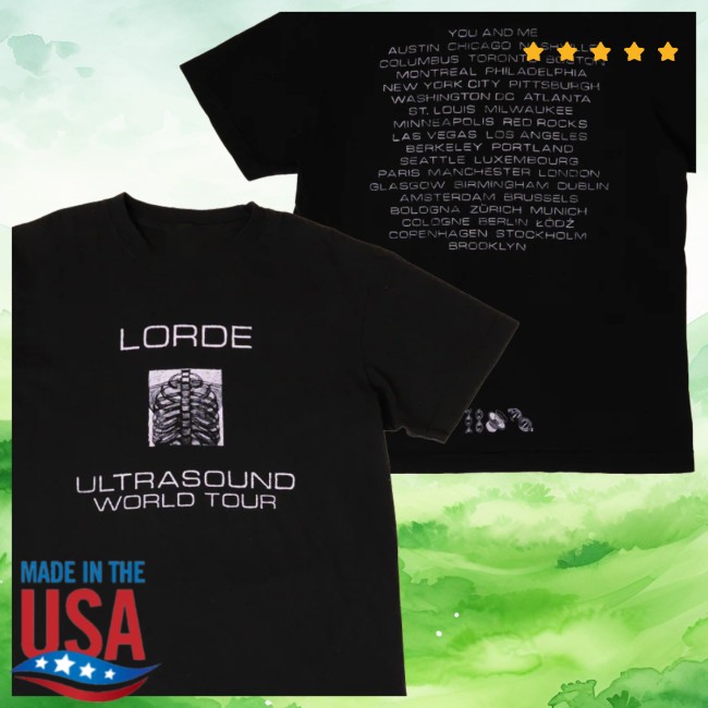 The front typically features a subtle or artistic “ribcage” graphic motif—reflecting Lorde’s signature introspective style—while the back includes printed 2025 tour dates in a classic “dateback” layout, a common feature in official concert merchandise