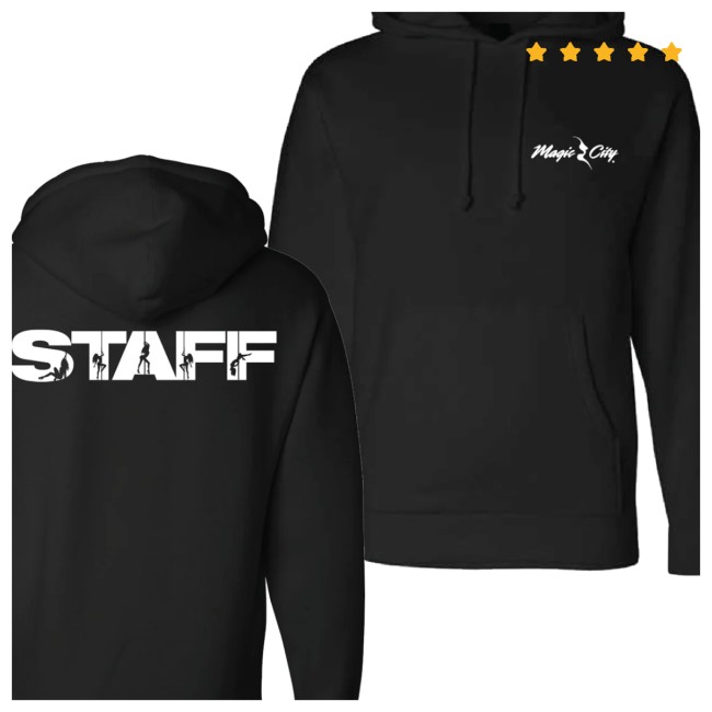 The Magic City Staff Hoodie typically features a clean yet bold design, often with “Magic City” text or logo across the chest or back, sometimes paired with subtle staff-only details that distinguish it from general-release merch.