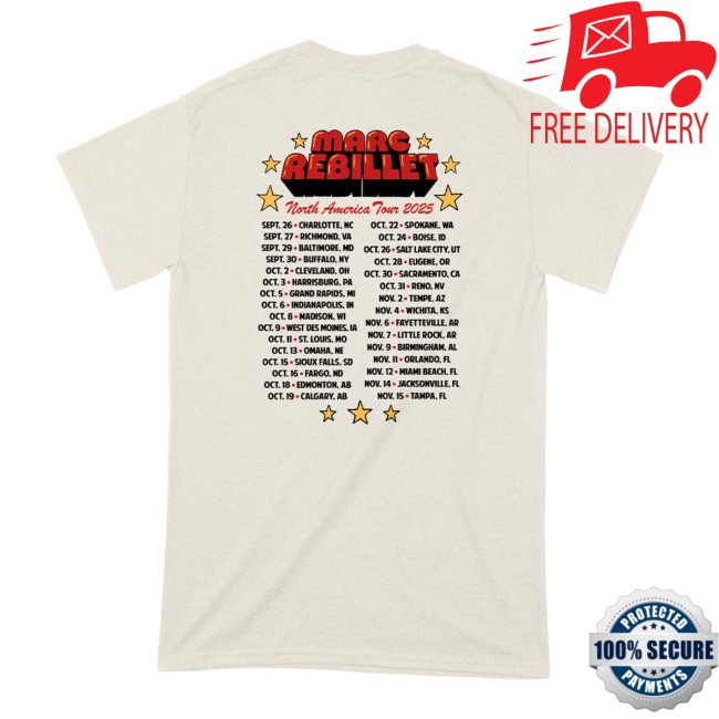 Celebrate Marc Rebillet’s Eagle Eyes North American Tour 2025 with this official tour T-shirt, a must-have for fans and concert-goers. Featuring a bold tour graphic on the front, it highlights the “Eagle Eyes” design and includes details from the Sep–Nov 2025 North American tour, making it a perfect keepsake from the experience.