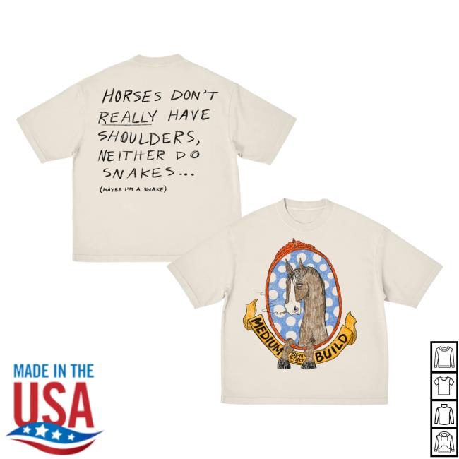 Medium Build Merch Store Horse With No Shoulders T-Shirt combines quirky, eye-catching design with everyday comfort. Made from soft, high-quality fabric, this tee offers a relaxed fit that’s perfect for casual wear or layering. The Horse With No Shoulders graphic delivers a bold, playful statement that showcases the brand’s unique and irreverent style. Ideal for fans who want to stand out with distinctive, conversation-starting fashion.