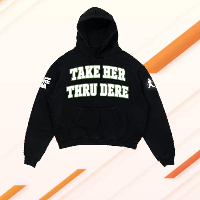 Rep the vibe in style with the Take Her Thru Dere Collegiate Hoodie from Metro Boomin Shop Merch. Made from a soft, durable cotton-poly blend, this hoodie delivers warmth, comfort, and everyday wearability. Featuring a bold collegiate-inspired “Take Her Thru Dere” graphic across the front, it combines classic streetwear with Metro Boomin’s unmistakable creative edge. Finished with an adjustable drawstring hood and a roomy kangaroo pocket, it’s perfect for fans who want a hoodie that’s equal parts comfort and statement.