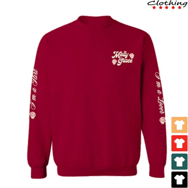 Stay cozy and stylish with the Lover Flirt Sweatshirt from Molly Grace Music Store. Made with a soft, premium blend for warmth and comfort, this sweatshirt brings a playful edge to your everyday wardrobe. Featuring bold, flirty lettering inspired by Molly Grace’s signature vibe, it’s perfect for layering on chilly days or wearing as a statement piece. Whether you’re at a show, relaxing at home, or out with friends, this sweatshirt is a must-have for fans who love to mix comfort with confidence.