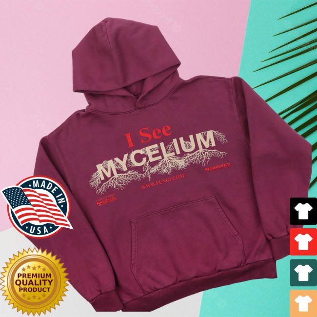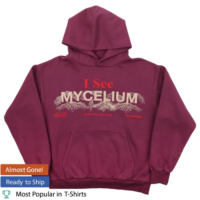 The I See Mycelium Mulberry Hoodie from Online Ceramics is a distinctive streetwear piece that blends psychedelic design with nature-inspired symbolism. The hoodie features the bold “I See Mycelium” graphic, referencing the underground fungal network known as mycelium, often used as a metaphor for connection, growth, and awareness.