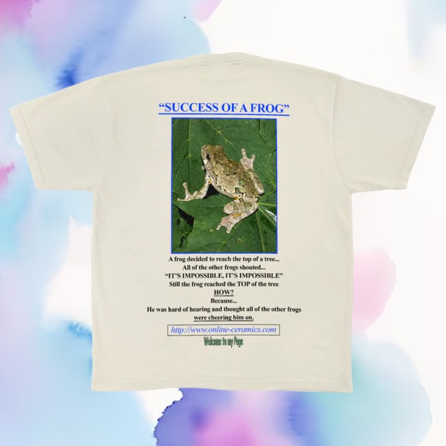 The Online Ceramics Store Merch Success Of A Frog Cream brings a playful yet artistic edge to your wardrobe. Crafted from soft, high-quality cotton, this cream-colored tee features the quirky “Success Of A Frog” graphic, blending humor with the brand’s signature creative style. Comfortable, versatile, and uniquely expressive, it’s a standout piece for fans of Online Ceramics who appreciate bold, offbeat designs.