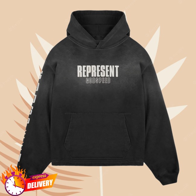 The Puffer Reds Store Merch Represent Aged Black Godspeed Hoodie is a bold and stylish streetwear essential designed for those who appreciate edgy, statement-driven fashion. Featuring the striking “Godspeed” graphic in an aged, vintage-inspired print, this hoodie delivers a worn-in aesthetic that adds character and depth to the overall look.