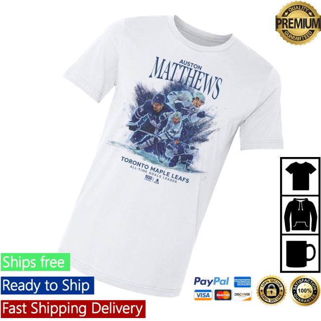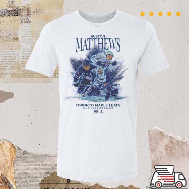 Realsports Shop Merch Matthews Maple Leafs All Time Goals Leader Tee is a must-have fanwear piece celebrating Auston Matthews’ historic achievement with the Toronto Maple Leafs. Made from soft, high-quality cotton, it features a comfortable unisex fit perfect for game days or everyday wear. Showcasing the bold All Time Goals Leader design, this tee highlights team pride, legacy, and elite performance. Ideal for devoted Leafs fans and hockey enthusiasts, it’s a timeless tribute to one of the franchise’s greatest moments and a standout addition to any fan’s wardrobe