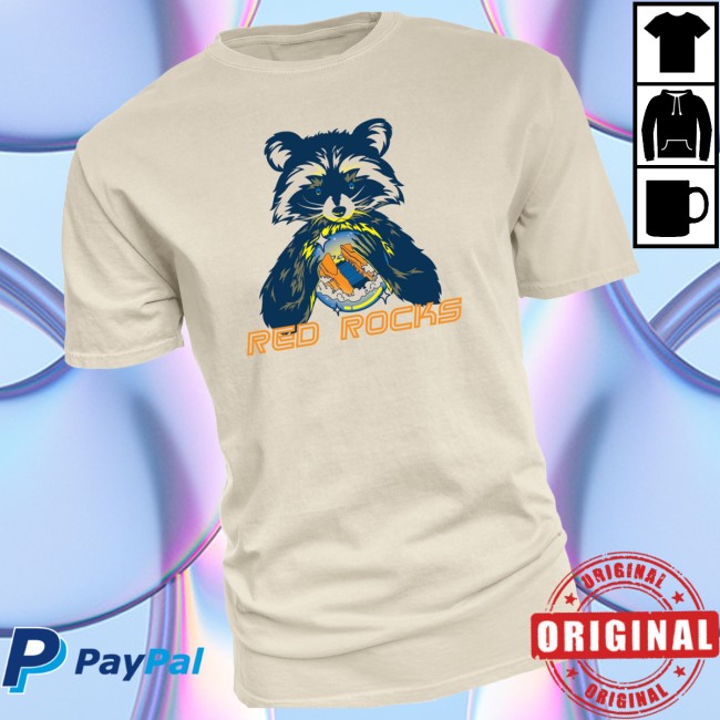 Add a touch of whimsy to your wardrobe with the Red Rocks Gift Shop Store Merch Red Rocks Crystal Ball Raccoon T-Shirt. Made from soft, high-quality fabric, this T-shirt provides all-day comfort while showcasing a playful and mystical raccoon graphic holding a crystal ball, inspired by the iconic Red Rocks. Perfect for casual outings, concerts, or just expressing your fun-loving style, this tee combines comfort, durability, and eye-catching design.