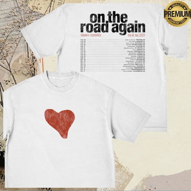 Show your love for Shawn Mendes with the White Heart Tour Tee from his official store. Made from soft, high-quality fabric, this t-shirt combines comfort and style while featuring a clean, iconic heart design inspired by Shawn’s tour. Perfect for concerts, casual outings, or everyday wear, it’s a must-have for fans who want to celebrate his music in style. Durable, versatile, and effortlessly cool, this tee is an essential addition to any Shawn Mendes fan’s wardrobe.